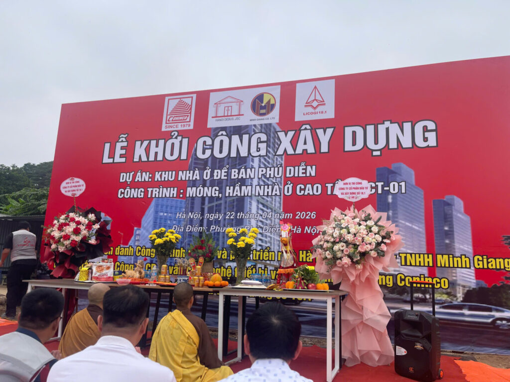 Sáng ngày 22/04/2026, tại Ô đất CT thuộc dự án: Khu nhà ở để bán Phú Diễn, có vị trí tại phường Phú Diễn, quận Bắc Từ Liêm, thành phố Hà Nội, Công ty Cổ phần Đầu tư và Xây dựng số 18.1 (Licogi 18.1) đã long trọng tổ chức Lễ khởi công xây dựng gói thầu: Thi công móng, hầm công trình CT-01.